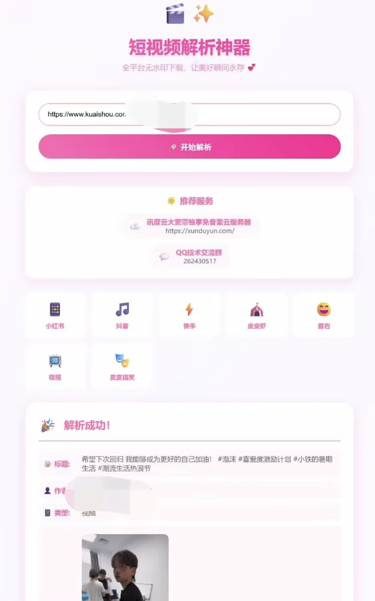 源码之家 会员免费/建站模版源码 开发者必备!KaiGe短视频解析系统源码发布|一键部署,接口全打通 https://o789.cn/20239.html