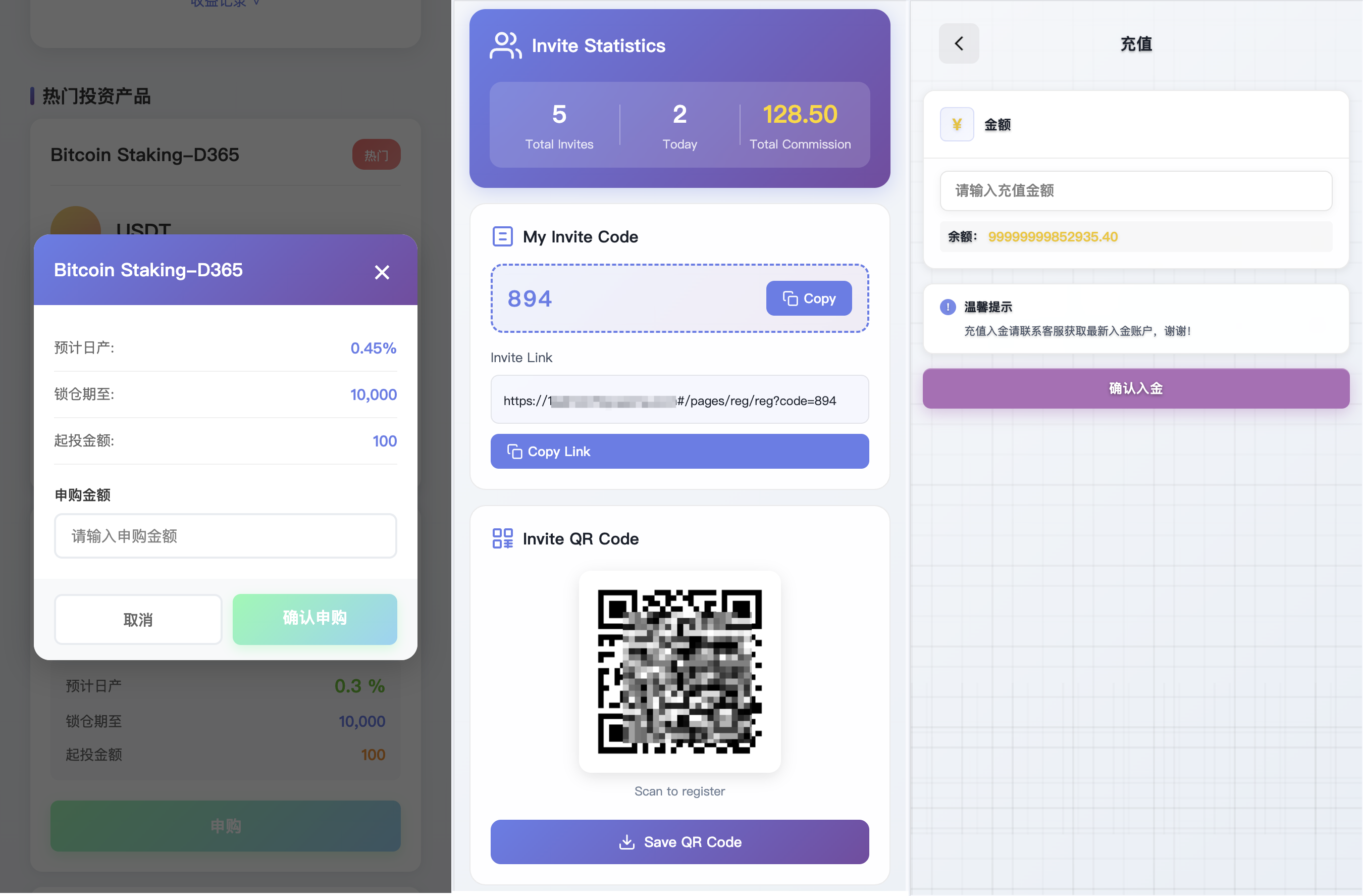 带代理后台,等级VIP制度,投资理财,邀请制度,余额宝功能 等等