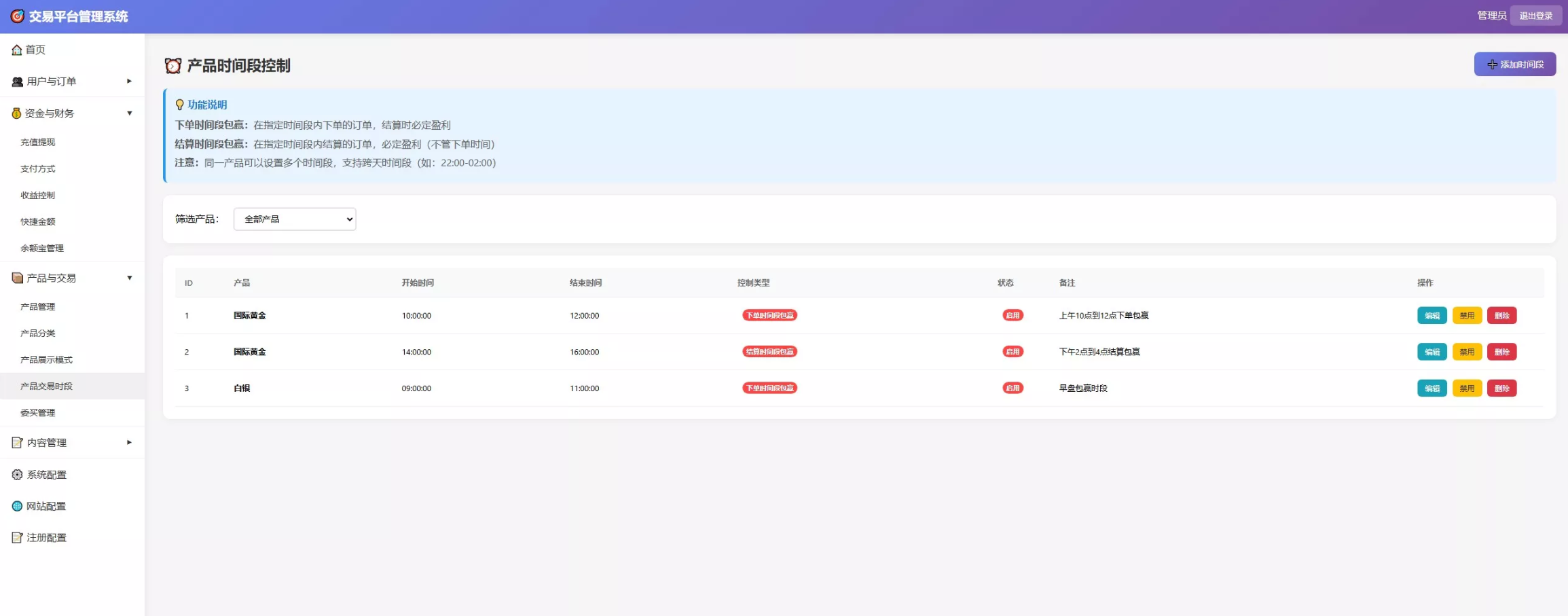 三位一体精准风控: 系统深度集成了个人单控、群体群控、以及产品时间段控制。管理员可在后台针对特定用户盈亏、特定金额区间概率、或特定时间段(如早盘、午盘包赢/包输)进行全自动化风控管理。