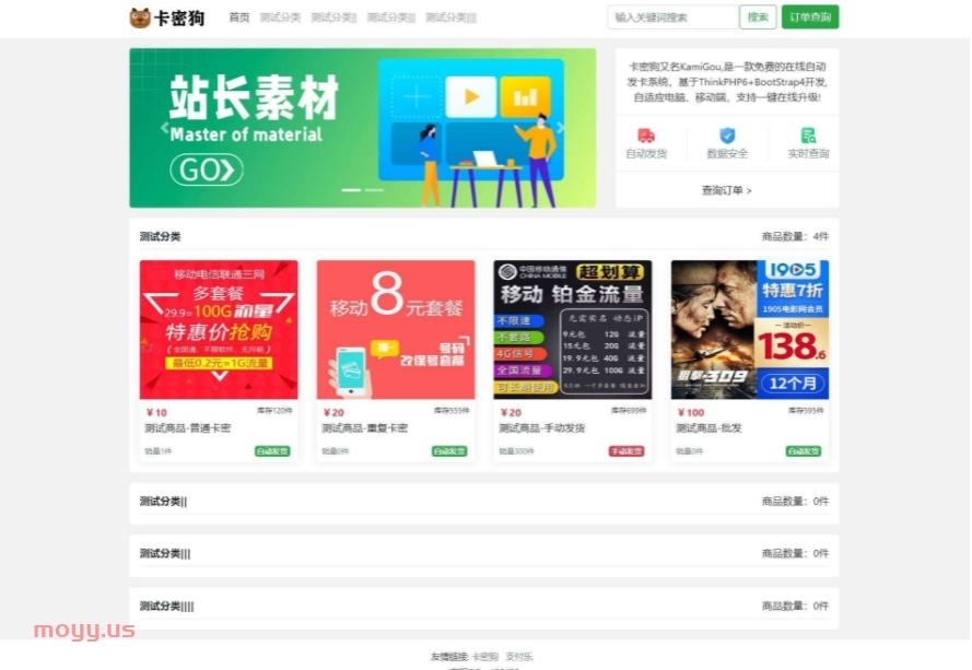 基于thinkphp6+BootStrap4开发的卡密狗PHP自动发卡系统源码+自适应电脑端+移动端,支持一键在线升级;