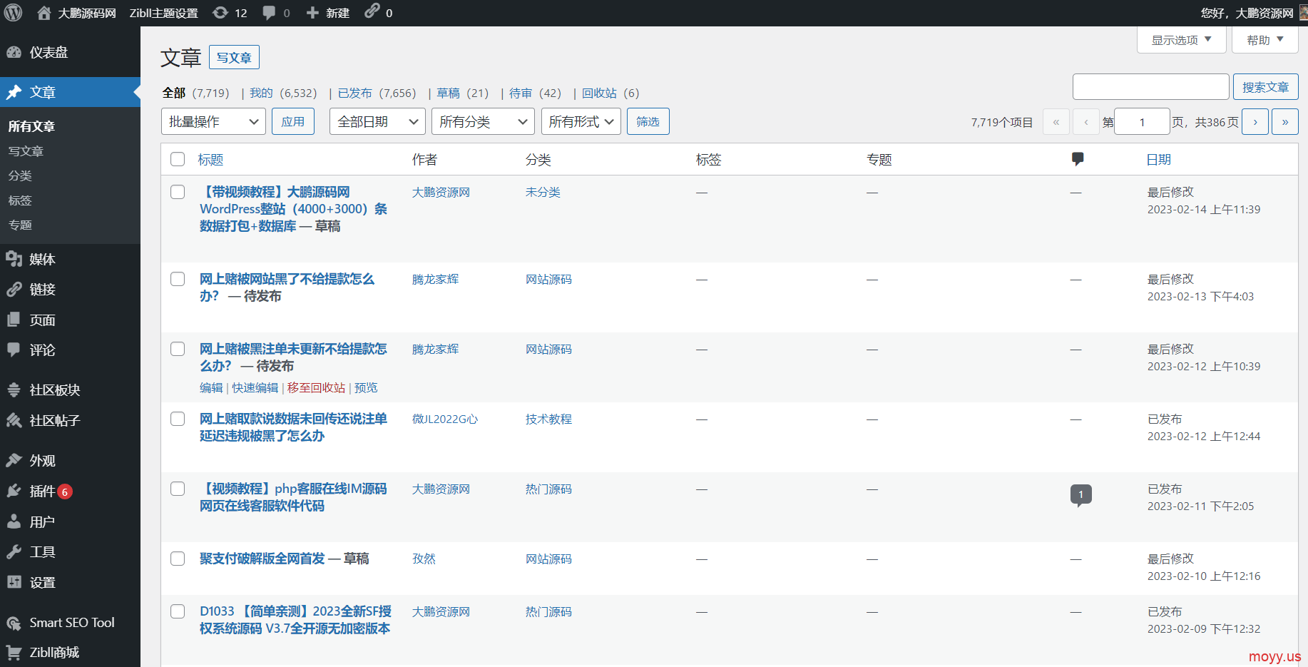 大鹏源码资源网WordPress源码网整站5000条源码文章数据打包+数据库-带视频教程