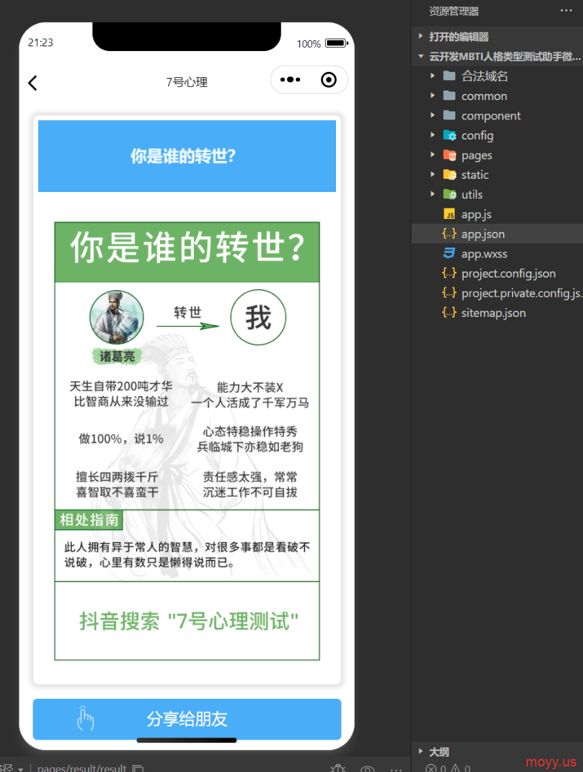 微信小程序源码 – 基于云开发的MBTI人格+爱情心理测试系统