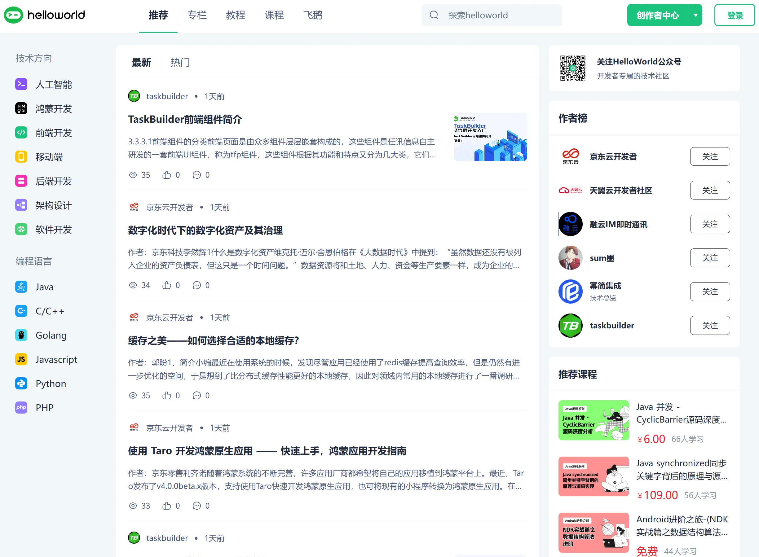 HelloWorld 不仅是一个学习平台,更是开发者展示和交流成果的重要舞台。平台支持用户发布自己的开源项目、技术文章和学习心得,同时也为全球开发者提供了协作的机会。通过参与开源项目,用户能够接触到最新的技术实践,与来自世界各地的开发者共同推动项目发展。此外,HelloWorld 还定期举办技术讲座、黑客马拉松等活动,为开发者提供更多展示才华、结交伙伴的机会。凭借开放的理念、多元的资源和强大的社区氛围,HelloWorld 成为了技术爱好者们每日学习和成长的理想之地,同时也为全球技术创新贡献了强大的力量。
