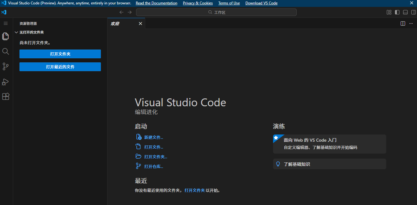 VS Code的在线版,可以使用浏览器在线编辑代码,任何地点,任何时间。